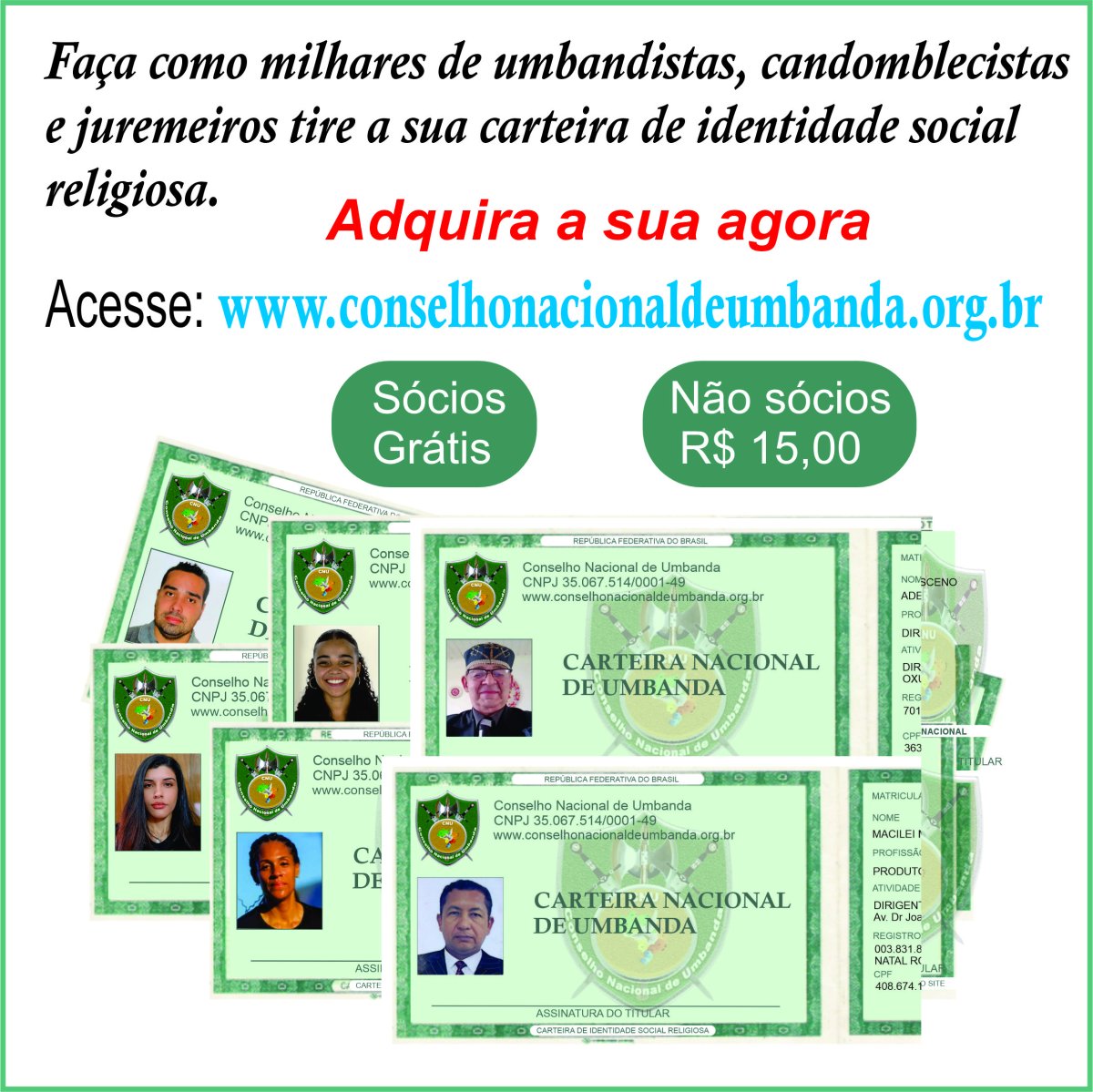 para sua finalização e entrega online é necessário o envio dos seguintes:Print da CI/RGCPFProfissãoFoto 3x4 jpg Nome e endereço do terreiro.